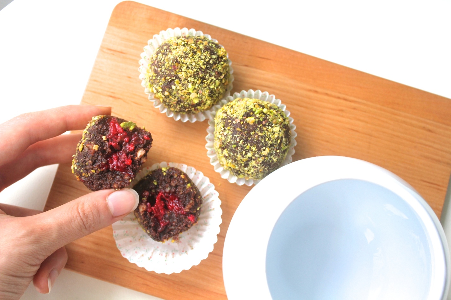 4. Roll ball onto a plate of ground pistachios