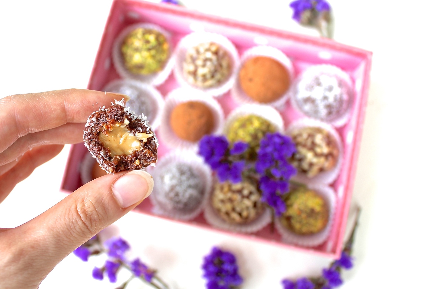 So when I got hooked on this new lifestyle, I started trying on dessert recipes and realized how easy it is to make these raw and vegan sweet snacks. When I came across the Raw & Vegan Snickers Bar recipe, I had some leftover base which I wasn’t sure what to do with other than to eat it whole. Then I thought why not make some filled Chocolate Truffles?